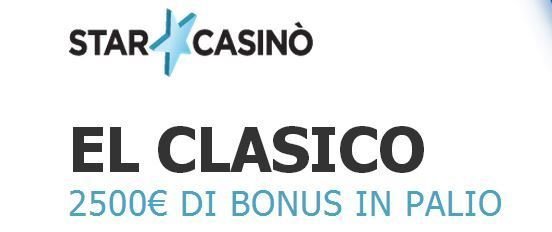 La settimana dal 19 al 26 maggio vedrà sfidarsi a colpi di giochi di casinò tutti i migliori giocatori virtuali di StarCasino. Per partecipare alla nuovissima promozione "El Clasico" basterà compilare il form di registrazione nella pagina dedicata alla promozione sul sito di StarCasino ed effettuare un deposito di almeno 20€.