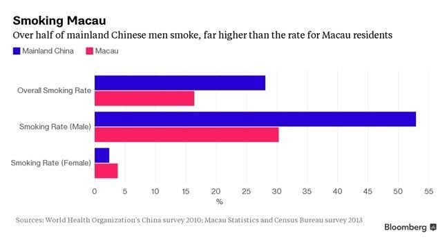 Più della metà degli uomini cinesi sono fumatori, e sono di gran lunga di più di quelli residenti a Macao.